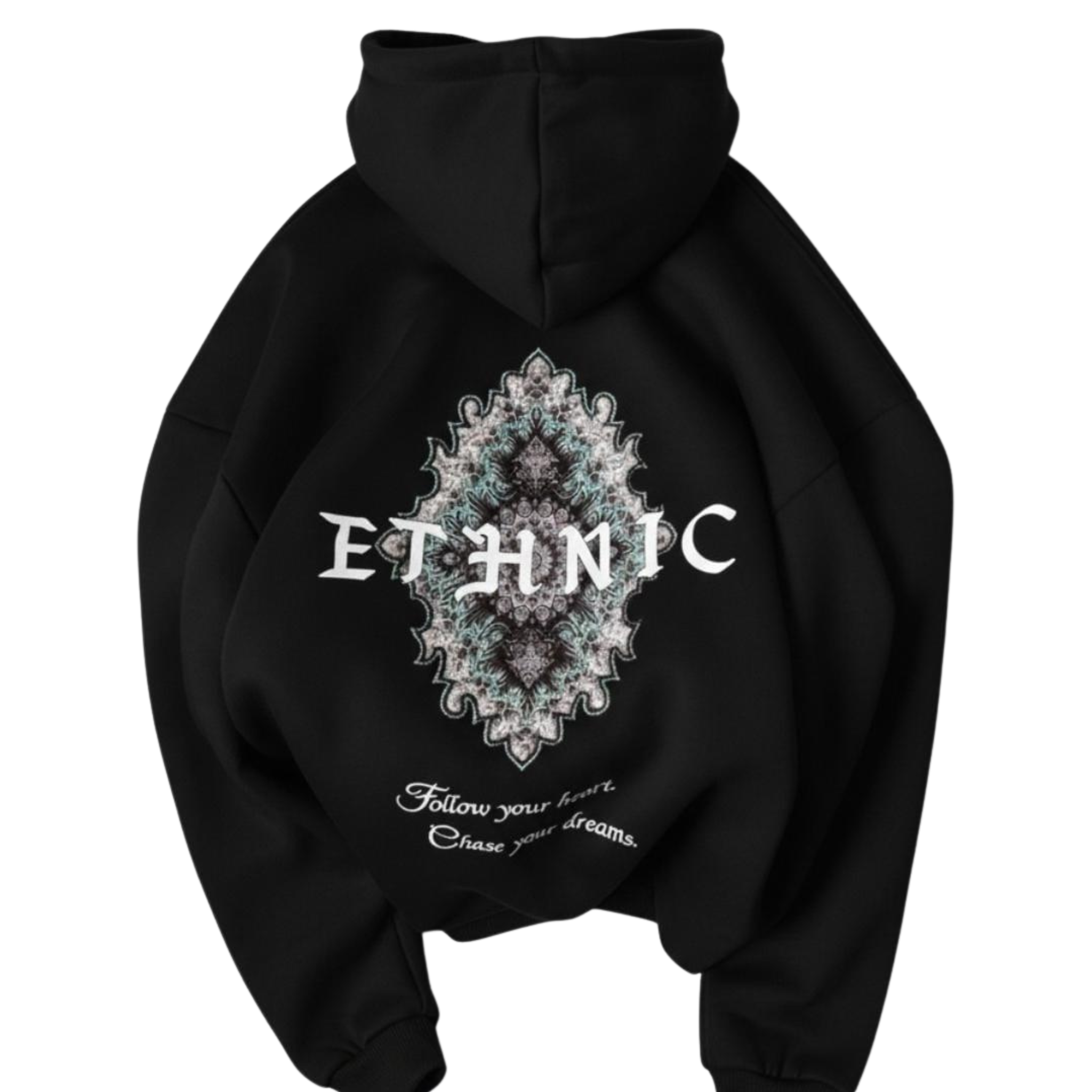 🧥 Ethnic Winter Hoodie for Men – Premium Black Hooded Sweatshirt