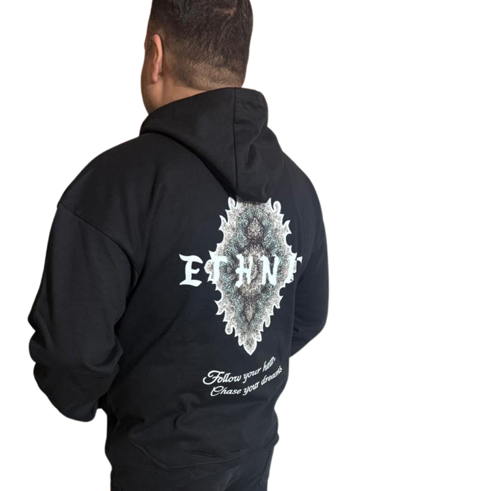 Upgrade your winter wardrobe with this premium ethnic hoodie for men, designed for those who value comfort, warmth, and unique style. Crafted in a classic black color, this hoodie features a minimal front design and a bold ethnic-inspired back print that makes a strong style statement.